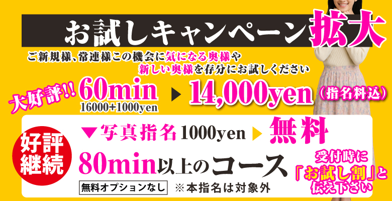 60分 ¥16,000+¥1,000→¥14,000(指名料込)