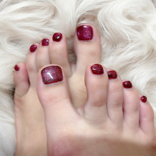 フットネイルをボルドーにしたら