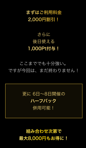 どのイベントとも併用可能で1,000円引きに