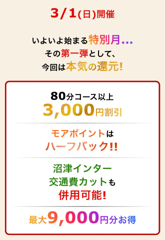3,000円引き 3回目のご利用でなんと!