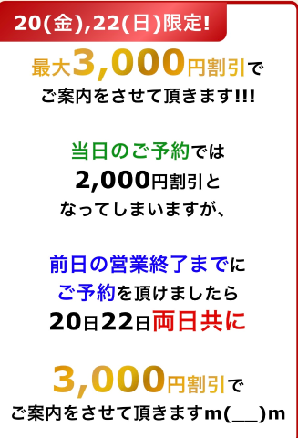 3,000円引き 3回目のご利用でなんと!