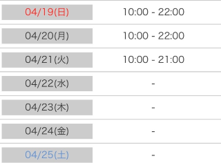 本日も10時から22時まで