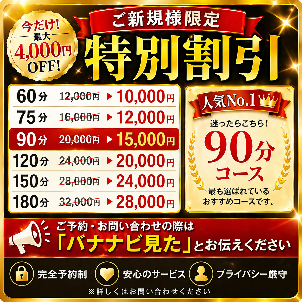 ・90分 20,000円 → 15,000円(人気No.1)
