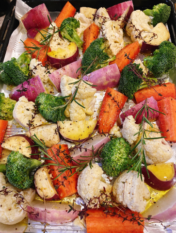 ローズマリーとタイムを乗せてお野菜のオーブン焼き