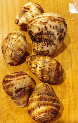 里芋を焼いてサラダにのせて