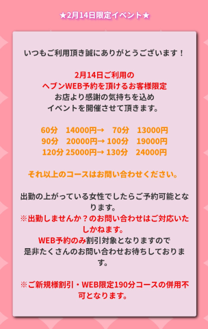 2/14(土)割引キャンペーン❤️