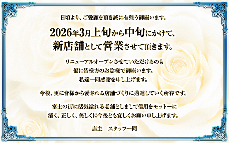 富士に待望の新店舗がオープン致しました!富士の有望店!
